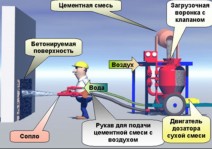 Мокрое торкретирование - при использовании этой технологии на распылитель (сопло) поступает готовый бетонный раствор. Подача его производится через специальные рукава сплошным потоком с помощью воздуха под давлением.